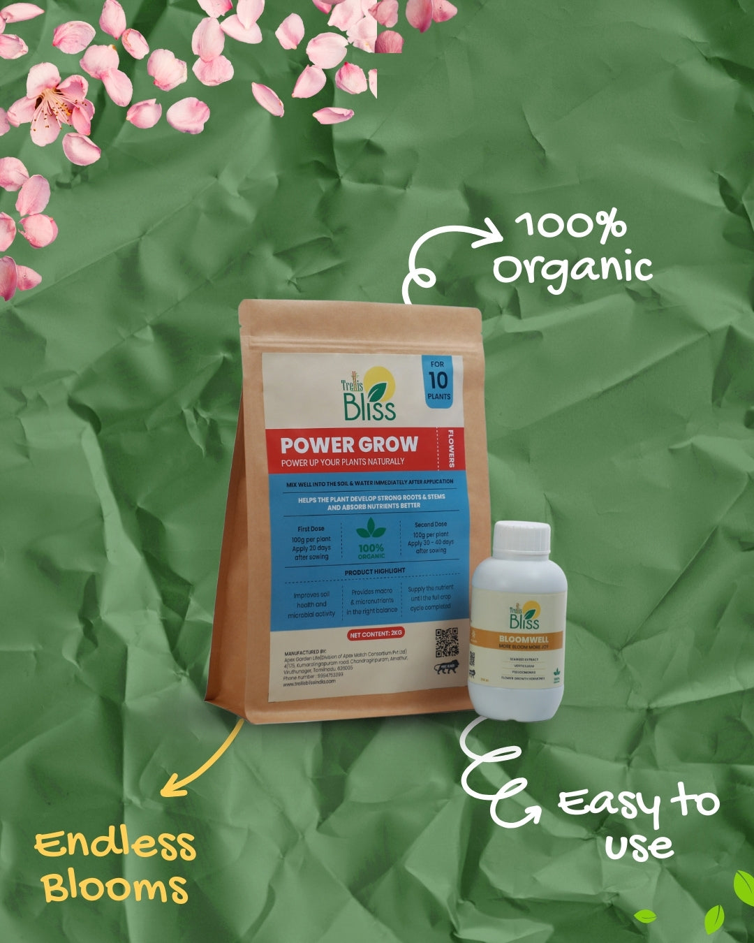 100% organic nutrient kit specially made for all flowering plants. Helps boost healthy growth, strong buds, and continuous blooming. Perfect for potted plants, grow bags, and garden plants.
